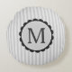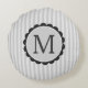 Monogram Black Grey White Scalloped Stripes Round Pillow