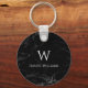 Monogram Black Marble Modern White Initial Name Keychain