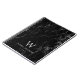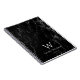 A simple but modern design, with a black marble background, and, in the lower part, a big white monogram initial with the name in white caps and the subject ("notes") in lower case under it.