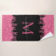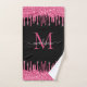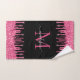 Monogram Black Metallic Hot Pink Dripping Glitter Bath Towel Set