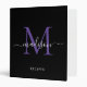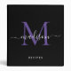 Elegant Monogram Black Purple Violet White Script Name Recipe 3 ring binder