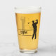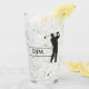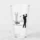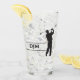 This distinctive golf themed glass tumbler features a black silhouette golfer in full swing. Your three letter monogram is also in black, framed by thin lines. Perfect for the "after golf" gathering. The image and text appear on both sides.
