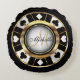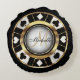 Monogram Black, White and Gold Poker Chip Round Pillow