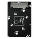 Monogram | Black & White Cute Puppy Dog Paw Print Mini Clipboard