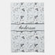 Monogram Black White Silver Grey Floral Leaves Kitchen Towel