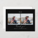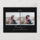 This modern minimalist black and white wedding two photo thank you postcard features elegant hand lettering and a simple monogram with a custom personalized thank you message and return address on the back of the chic card.
