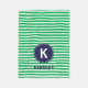 Nautical Kelly Green and white colour striped pattern with accent Navy Blue circle with custom monogram and name for cozy fleece blankets - chose your size of blanket. Personalize your gift by adding your own name, monogram or initial. This modern classic trendy coastal beach design will enhance any home decor, beach house, living room, sofa, bedroom, office, boat, university or college dorm room, nursery, teenagers, boys and girls, kids or baby bedroom. Choose your own font and colours to make it your own. For more colours go to www.zazzle.com/D_Zone_Designs