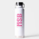 Monogram Block Shadow Initials Custom Text Pink Water Bottle