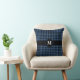 Monogram Blue & Black Gingham Plaid Checks Pattern Throw Pillow