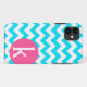 iPhone case cover in a stylish designer chevron stripes in blue features hot pink circle for initial monogram. Click the CUSTOMIZE IT button to change text, colour, size, and position to personalize your iPhone case cover. Contact Party Paper Creations for a different colour combo or if you need assistance.