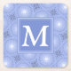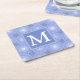 Monogram blue circles pattern square paper coaster