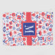 This folk art design features a bright blue and coral floral pattern.