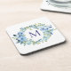 Monogram Blue Green Floral Botanical Watercolor Coaster