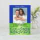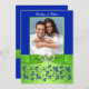Monogram Blue, Green Floral PHOTO Wedding Invite