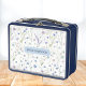 Monogram Blue Purple Wildflower Floral Pattern Metal Lunch Box