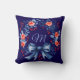 Custom Monogram Blue Red Rose Christmas accent pillow.