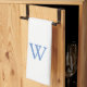 Monogram sky blue striped personalized kitchen towel. Sky blue monogram in classic block text on top and botton border within sky blue striped outer panels. White background.