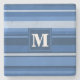 Monogram blue stripes stone coaster