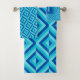 Monogram Blue Three-Tone Diamond Pattern Bath Towel Set