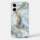 Pretty blue white silver gold marble swirl monogrammed iPhone 16, 15 14, 13 12 and 11 case. Available on all current iPhone cases. Add your name or your initials.