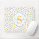 Monogram Blue Yellow & Grey Pattern Mousepad. Scandinavian floral pattern, light blue + yellow monogram. Fresh & modern.