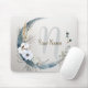 Monogram Boho White Orchid Flowers Blue Moon Mouse Pad