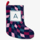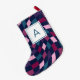 Monogram Bold Chequered Pattern Small Christmas Stocking. Colours in blue, teal, purple, and pinks. Personalize the template with your monogram initial. Double-sided design. © Kimbellished, LLC