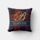 Monogram BROWN Tartan Blue Red Newlyweds Wedding Throw Pillow