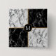 Monogram Button Black White Check Marble