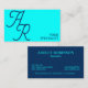 Monogram calligraphy initials cyan blue modern business card