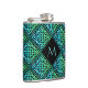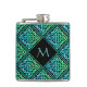 Monogram Celtic Knot Diamond Blue Green Hip Flask