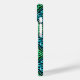 A black monogram iPhone 14 Case with a blue-green Celtic knot repeated diamond tile design. Make it personally yours with your very own monogram.