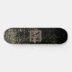 On this chic skateboard are gold shimmery confetti on a black backround for extra pop where in the middle is a brown square where you can customize it with a name and letter. Stylish glam vibes.
