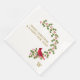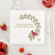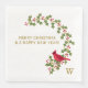 Personalize these paper napkins in the template with your own monogram initial. The illustration features a red cardinal standing on a curved holly branch with berries. The text to the left reads "Merry Christmas & A Happy New Year!".