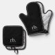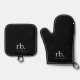 Monogram Classic Elegant Minimal Black and White Oven Mitt & Pot Holder Set