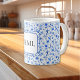Monogram Cobalt Blue Flowers & Leaves Pattern 11oz Coffee Mug