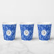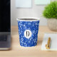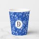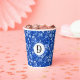 Monogram, Cobalt Blue Flowers & Leaves Pattern 8oz Paper Cups