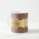 Monogram coffee mugs with cool leopard pattern animal print background and name space you can personalize with any name or monogram initials. Designed for men or women in a modern design that makes this a fun cup for coffee, tea, or your favorite beverage.