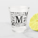 This personalized shot glass in a modern monogram collage design in classic black mixed fonts is a unisex design but makes a great gift for Him because boys are sometimes so difficult to shop for. Easy to customize and personalize, there are two text templates for the black lettering where you can add a monogram initial and a name for a unique custom shot glass worthy of any home bar. Decorative accents of dots, diamonds and squares, also in black, in between the names and initials add to the collage pattern. Whether it's for Him or for Her, for Dad or Grandpa, for a birthday or a holiday or as gifts for the groom, the best man and groomsman or the entire wedding party, this black monogram collage design one of a kind shot glass is perfect for collectors or as a special gift for a special occasion. *** Note: This design does not work well with the monogram letter "Q" so I suggest choosing another initial should that need arise.