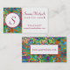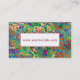 This business card features a piece of abstract digital modern art. A smattering of tiny squares in different sizes are sprinkled over a watercolor-textured background. I created this abstract art piece digitally. Features greens, yellows, orange, hot pink, blue and purple. The left side of the front is covered with the colours overlaid with a circular badge with red border for adding your initial for monogram. Details are in red to the right, contrasting beautifully with the stark white background. The back is completely covered with the same multi-coloured abstract art as well as a red-bordered white rectangle which offsets the website address. These overlay elements can be removed if you prefer. The funky, unique texture adds depth and the abstract quality of this design makes it perfect for people in creative fields. The colourful background art design can be moved around, rotated or resized if you'd like to have a bit of control over the ultimate look of these cards. Likewise, change your fonts if you wish.