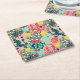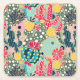 Monogram | Colourful Polka Dot Cactus Pattern Square Paper Coaster