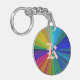 Monogram keychain. See the bold and bright rainbow of colours in a circular pattern that meets as one in the centre of this spectacular design. The blends of brown, orange, yellow, green, blue, purple, pink, and red are part of this intriguing display.