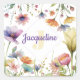 Monogram Colourful Wild Flower Illustrated Square Sticker