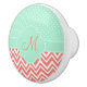 Monogram Coral Chevron with Mint Polka Dot Pattern Ceramic Knob