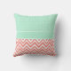 Monogrammed coral pink and mint green design pillow. Coral pink and white chevron pattern and mint green and white polka dot pattern.