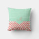 Monogram Coral Chevron with Mint Polka Dot Pattern Outdoor Pillow
