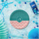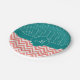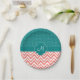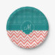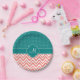 Monogram Coral Chevron with Teal Polka Dot Pattern Paper Plate