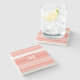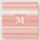 Monogram coral stripes stone coaster
