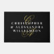 Premium look minimalist minimal stylish couple doormat. Personalizable customizable with monogram, initial letters and names. Classy timeless black background, elegant gold calligraphy script handwritten initial letters from his and hers first names, and stylish white typography for the first names and the last, family name. Beautiful and useful outdoor home decor for you or as a thoughtful custom gift for another couple. As housewarming, new home owners, newlyweds present for example. Elevate the aesthetic of the house entrance with this chic personalized monochrome simple monogrammed design. Even to be considered at a house stage item, to make it more inviting and appealing to potential buyers. Very affordable, under 50 dollars at medium size. A customized modern premium lifestyle present for him and her.