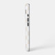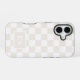 Stylish iPhone case features a neutral cream and white chequered pattern with a customizable monogram in a beige rectangle near the bottom. Add your initials in the sidebar to personalize it. The geometric chequerboard pattern is made of rows of alternating white and light tan squares. Other case styles and models are available in the sidebar.